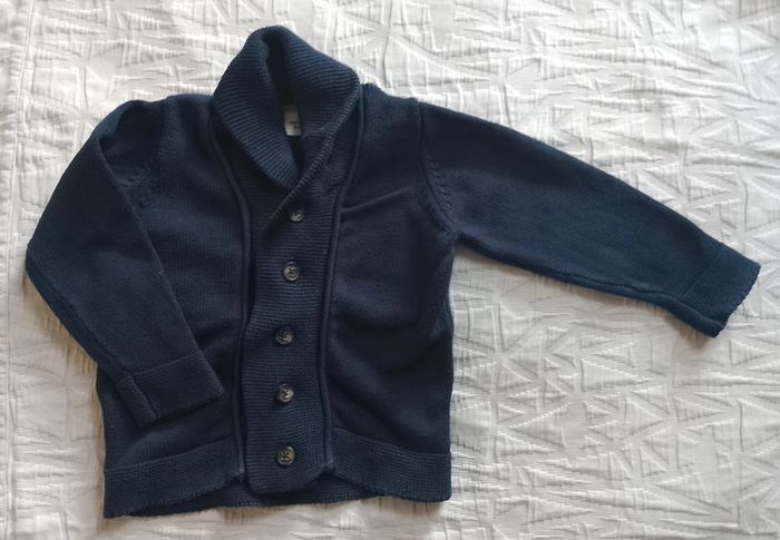 Gilet Tape a l'oeil Tao Bleu marine couleur légèrement passée 18 mois #angiolinolino_18mois