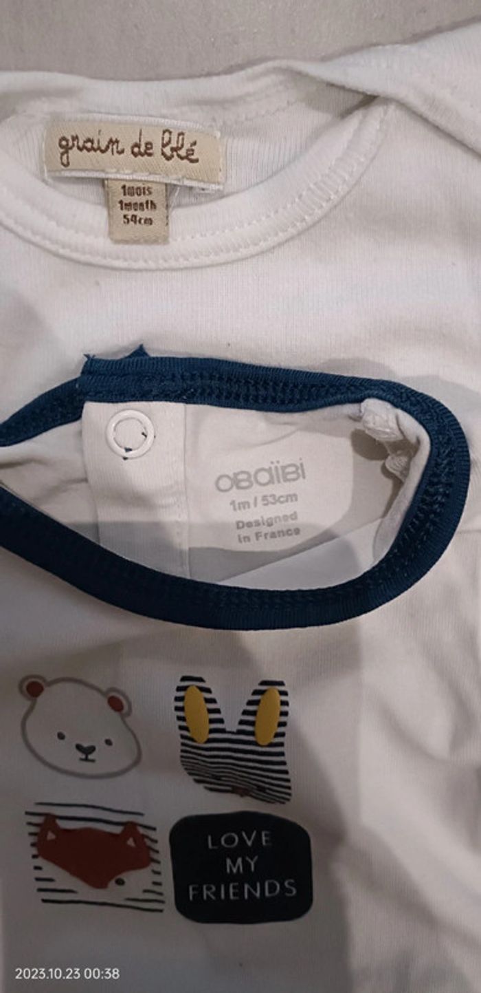 Lot de 2 bodies manches longues garçon - taille 1 mois - photo numéro 3