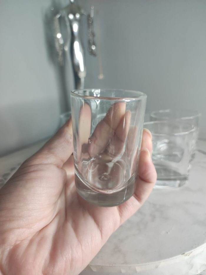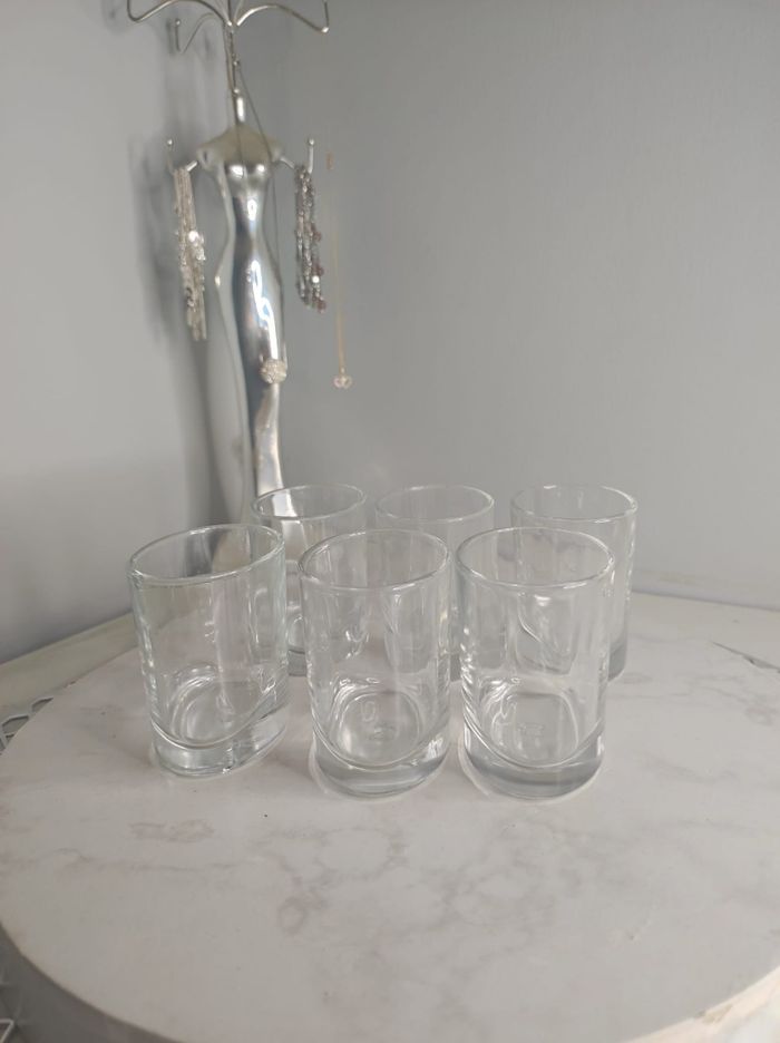 Lot de 6 verres a apéro ovales de 20cm de chez cosy & trendy. Dimensions 6,5hx 4,5x6,5 ❌️ Le poids peut étre modifier avant achat