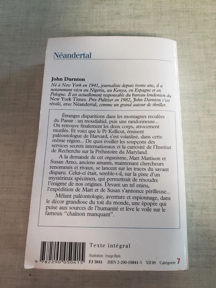 Livre Néandertal De John darnton Livre en bon état intérieur Quelques marques d'usure extérieures Voir photos