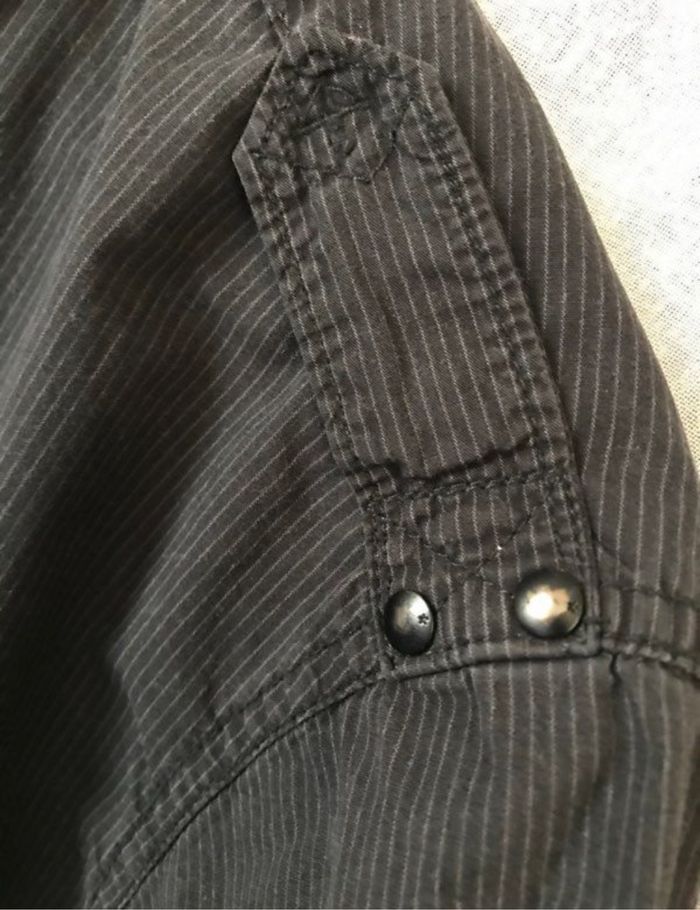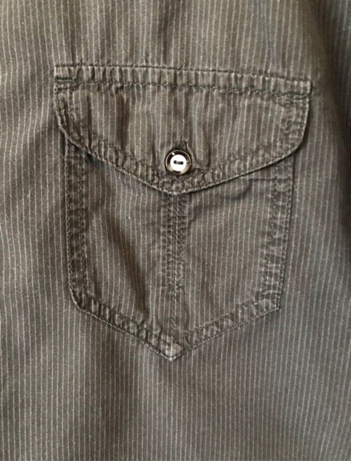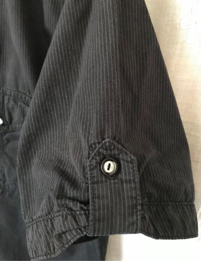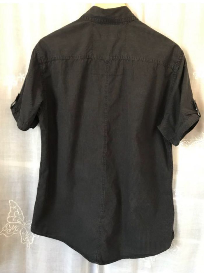 Chemise manches courtes très finement rayé noir et gris anthracite taille L Celio carrure 47 cm largeur à plat sous les bras 60 cm