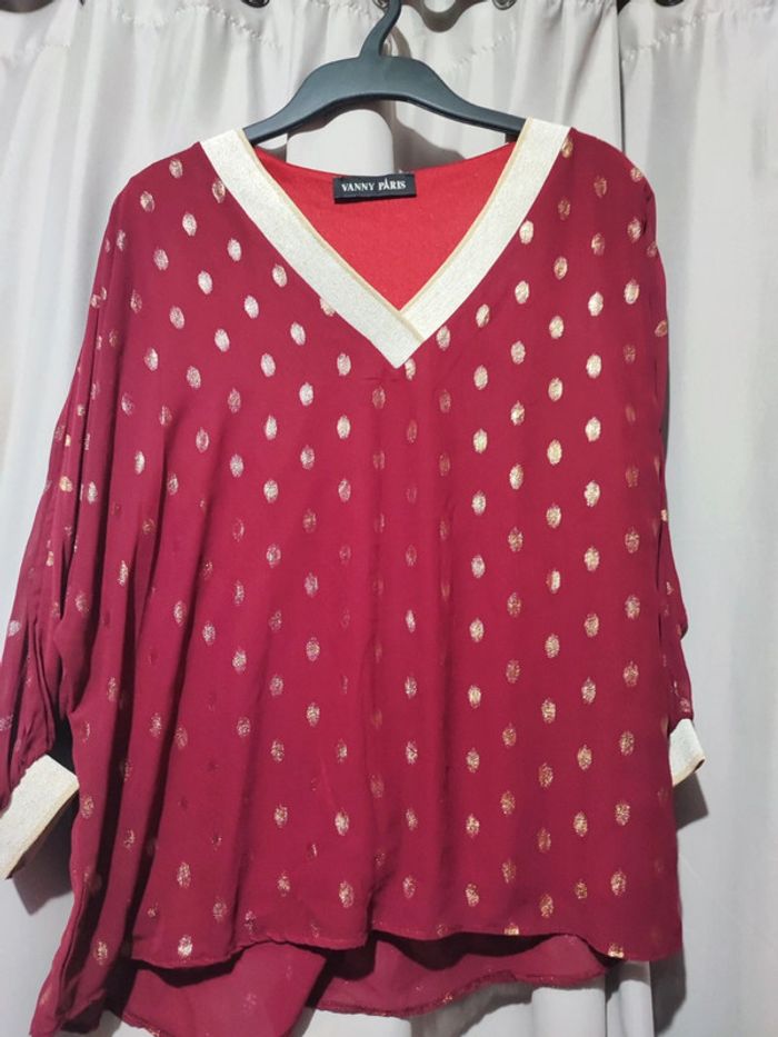 Blouse femme taille L bordeaux et or - photo numéro 1
