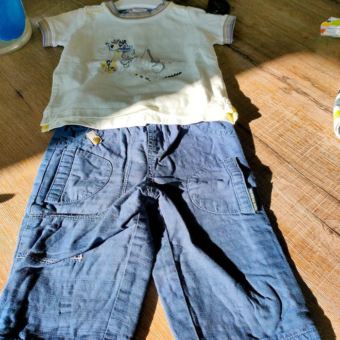 Ensemble garçon 6/9mois Pantalon bleu terre de marin 6 mois Tshirt sergent major 9 mois. Le tout en parfait état. #ensemblebebe #ensemblebebegarcon6mois #sergentmajorgarcon9mois #terredemaringarcon6mois #ensemblebebegarçon6mois