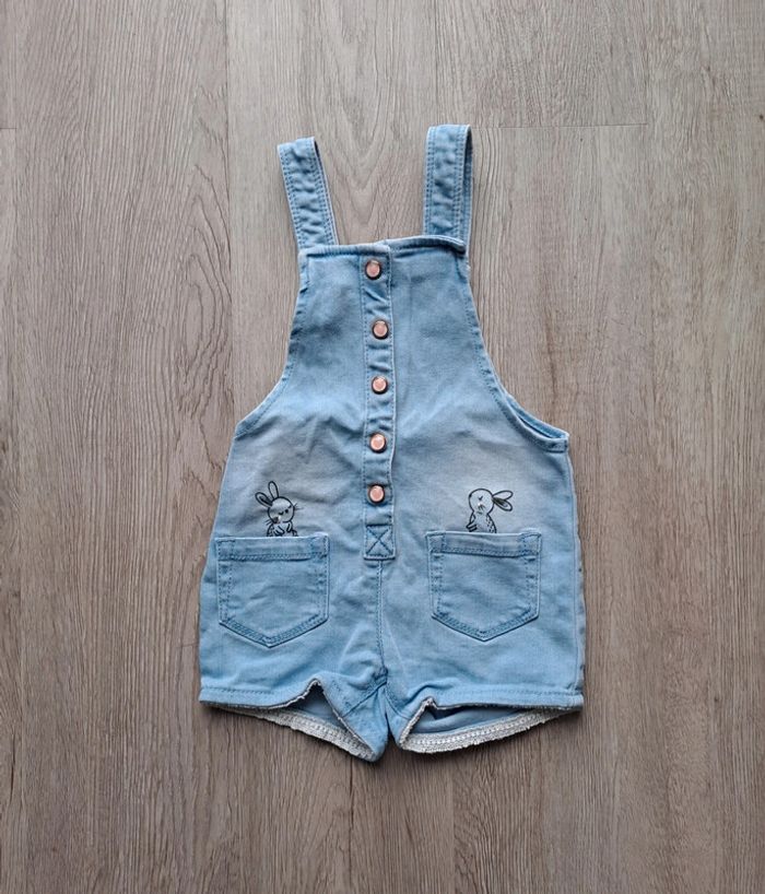 Salopette en jean avec ouvertures par pressions sur le devant Motifs lapins