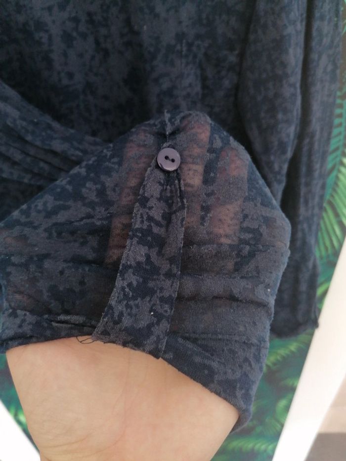 Bonjour Voici un tee shirt bleu marine tout en transparence en parfait état