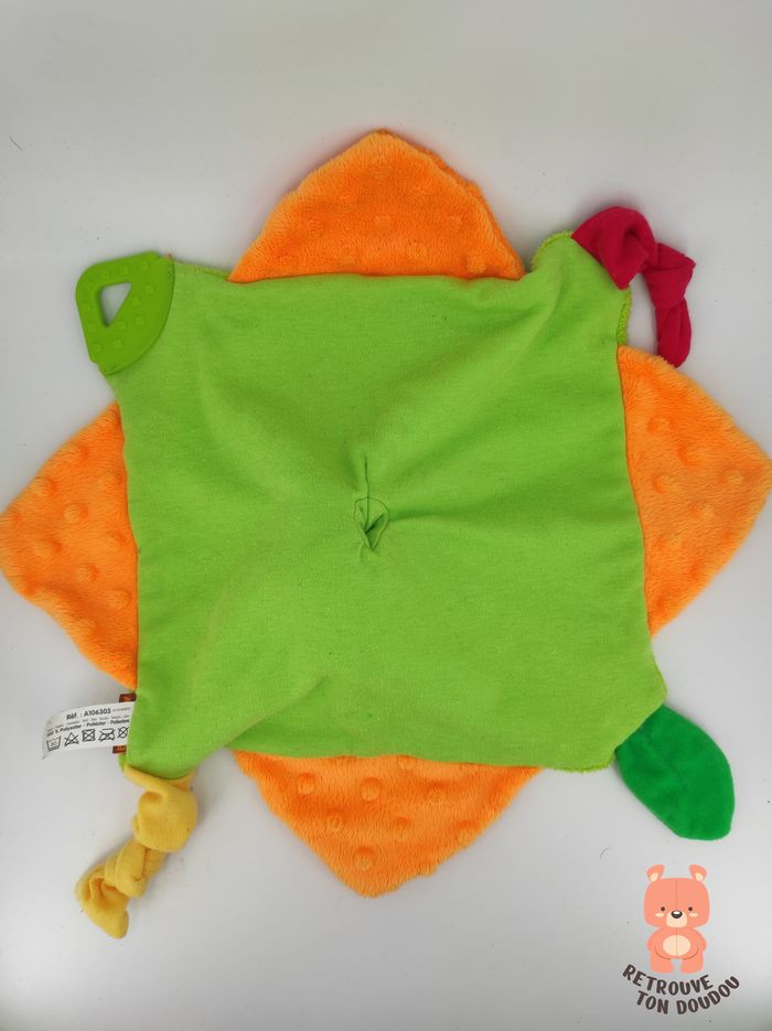 🐦 Doudou plat oiseau toucan vert et orange de la marque Babymoov Doudou avec deux carrés superposés, à chaque coins du carré orange il y a une matière d'éveil (bruit de papier froissé, tissus à tirer, anneau de dentition et attache tétine) 📏 Dimension : 27 cm environ ✨ Occasion, excellent état 🧼 Lavé avec lessive hypoallergénique 👀 Vous achetez le doudou que vous voyez sur les photos.