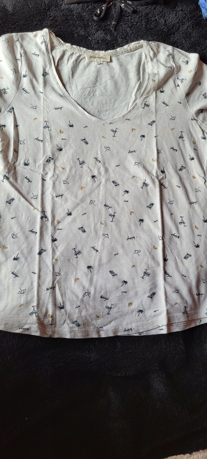 Tee-shirt Blanc Taille 38 Grain de malice Défaut voir photo
