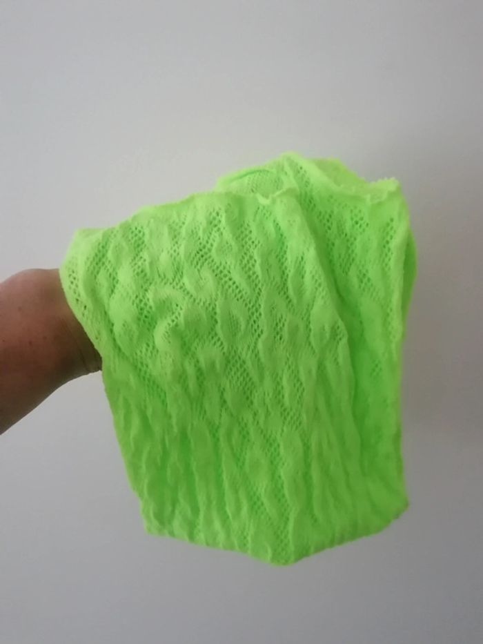 Stretch (stretch comme un collant) fluo entre le jaune et le vert fluo. Jamais porté. Pratique car prend très très peu de place dans le sac 🛍 de plage 🏝️