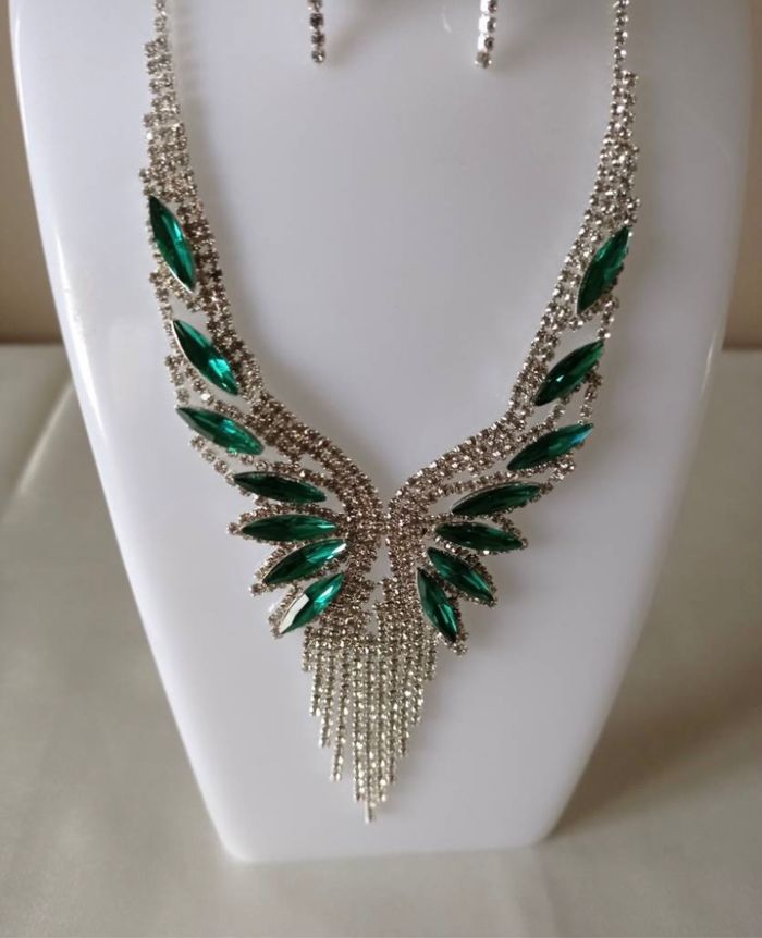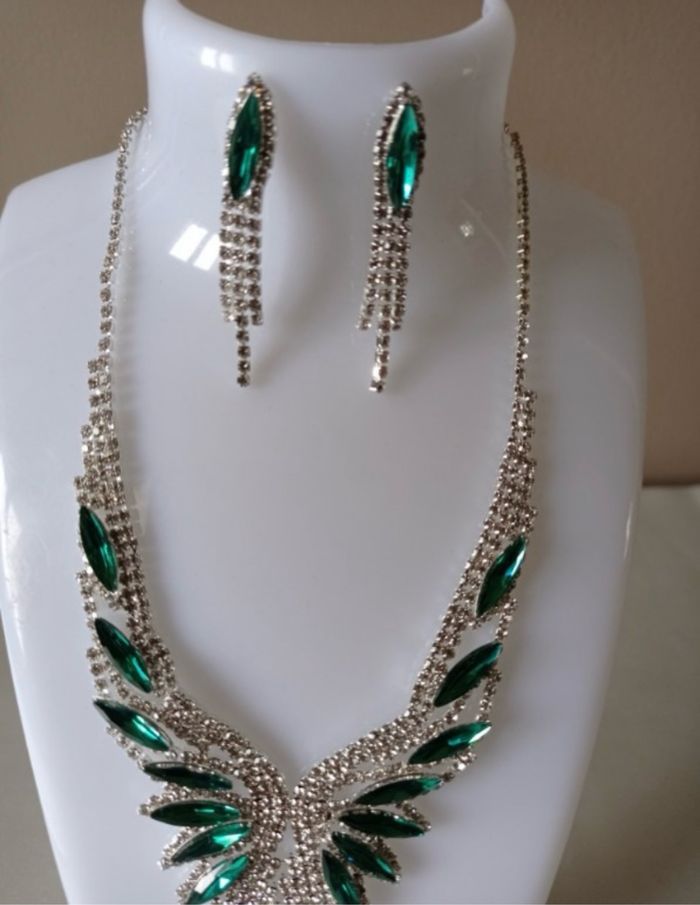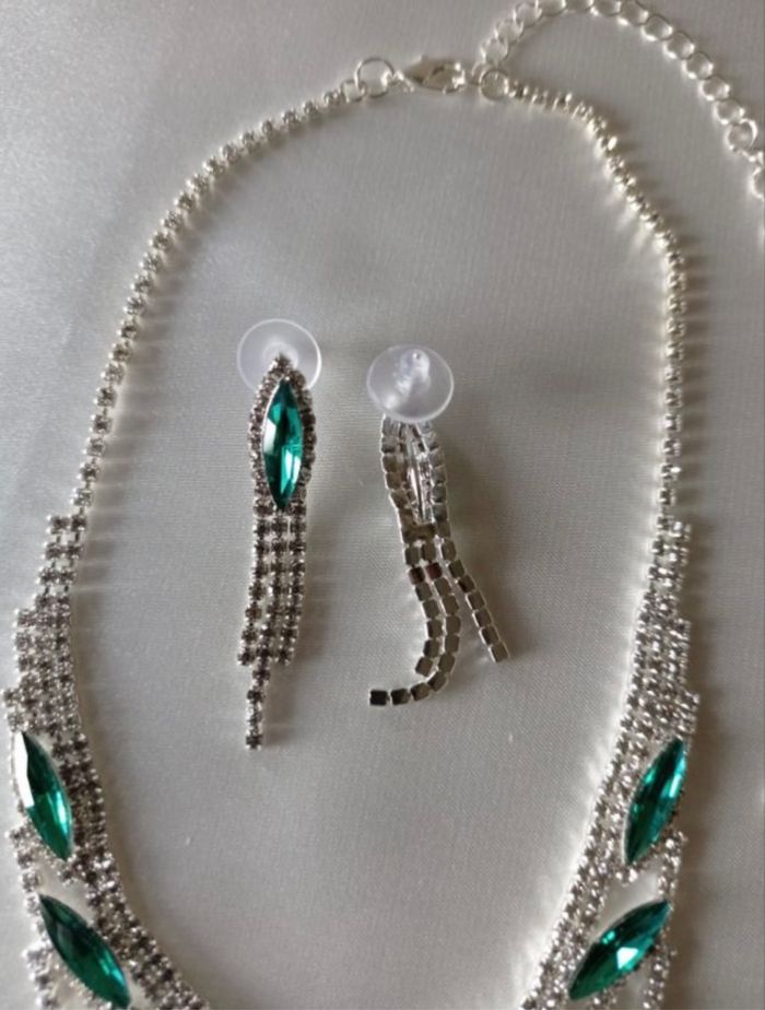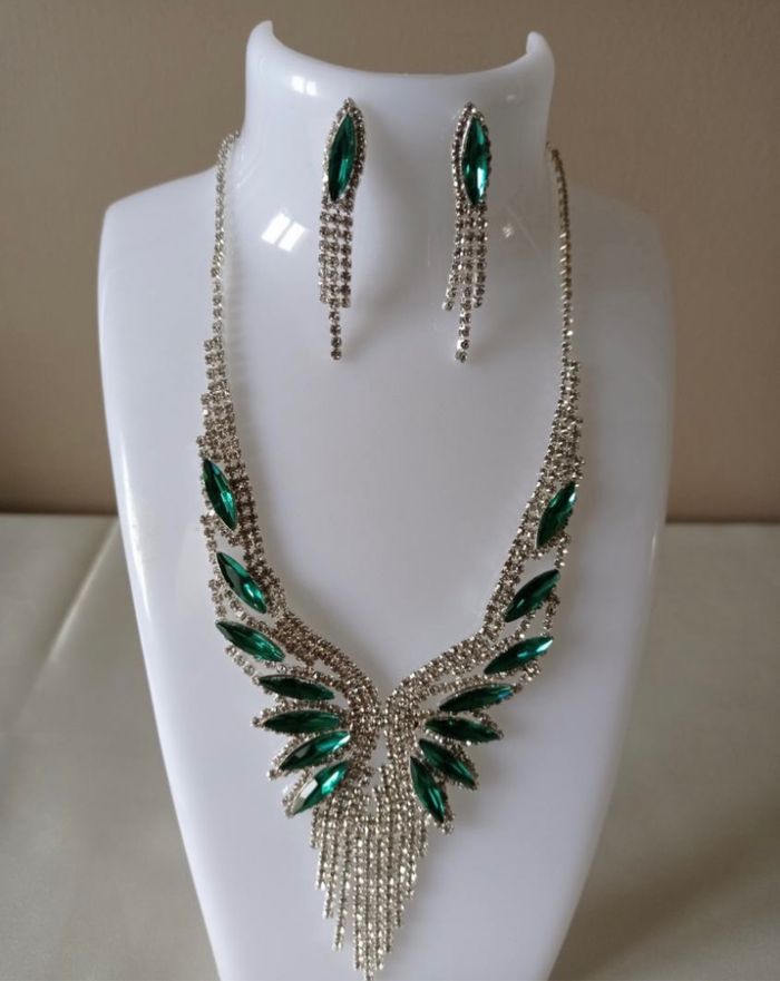 Ensemble de bijoux collier et sa paire de boucle d’oreille en pierre blanche verte pendante. Idéal pour fête ou mariage. Très bonne qualité, très élégant, totalement neuf, vendu dans leur emballage d’origine. Expédition rapide après votre commande