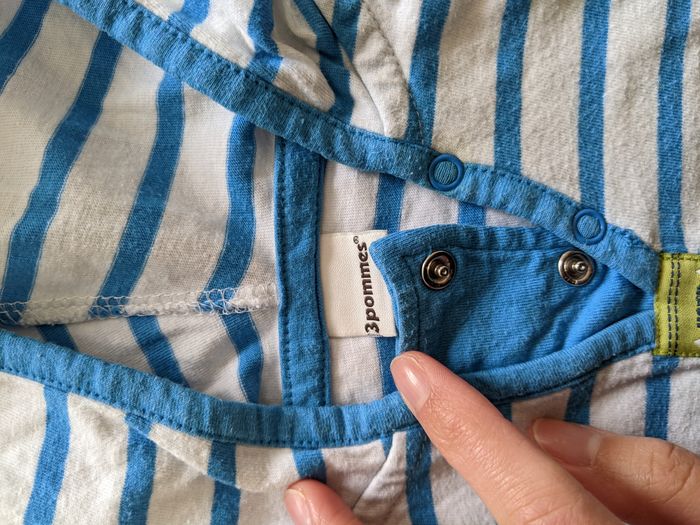 T-shirt rayé bleu et blanc à capuche Taille 3 mois Marque 3 pommes Parfait état
