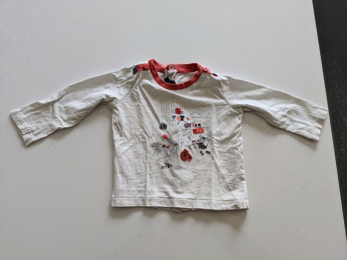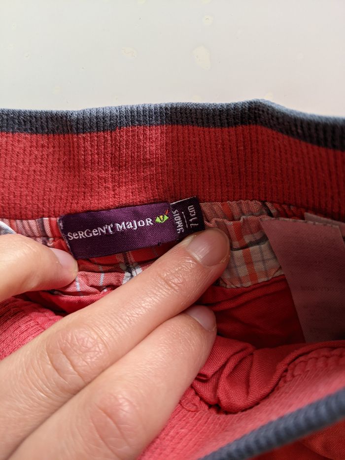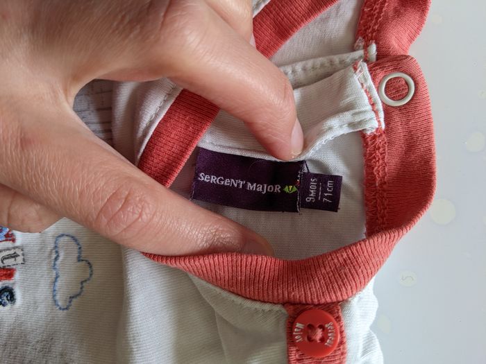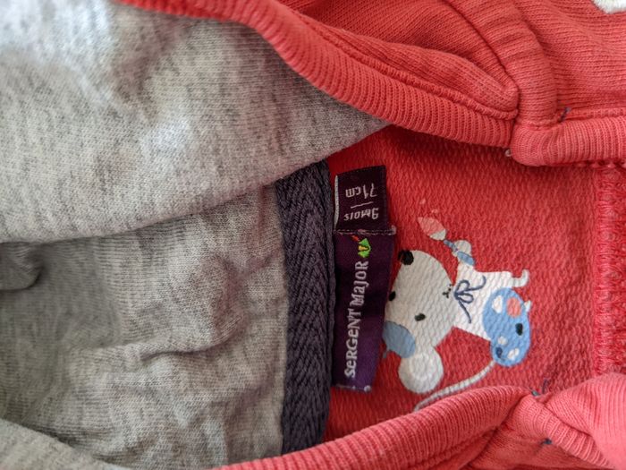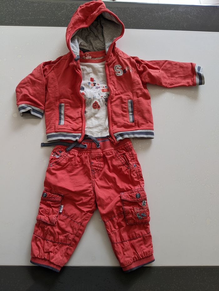 Ensemble T-shirt+ pantalon + sweat rouge et blanc Marque Sergent major taille 9 mois (mais taille petit) Pantalon et sweat en très bon état, t-shirt état satisfaisant (un petit trou dans le dos en haut)