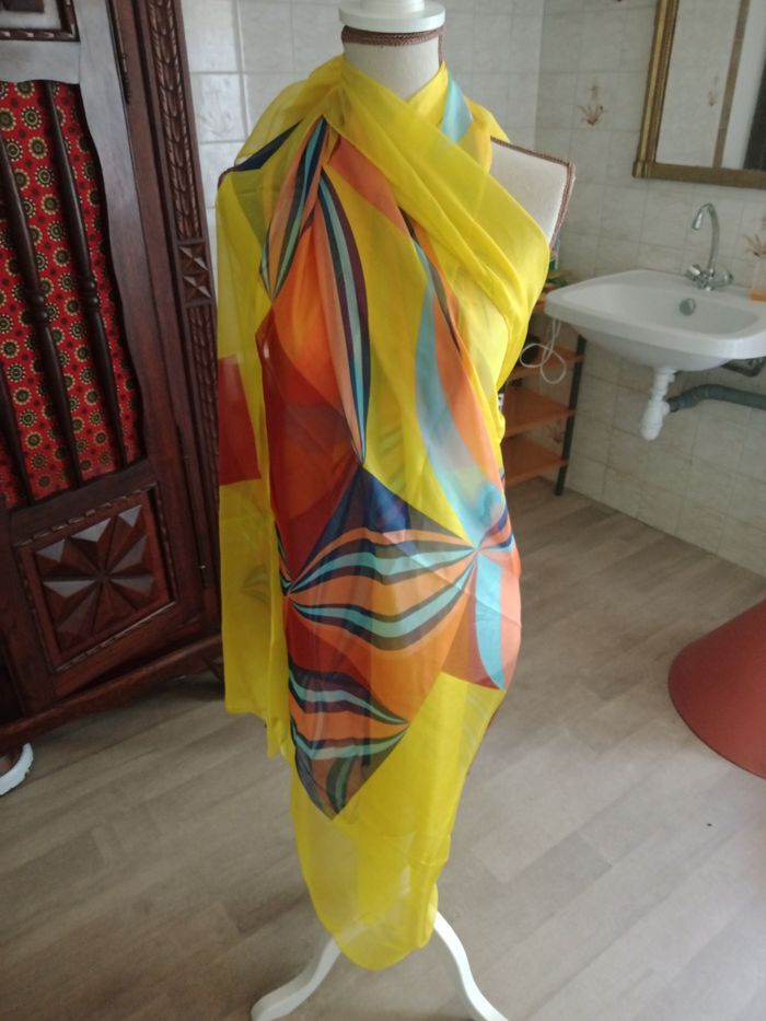 Paréo, étole, en 100% polyester, on dirait de la mousseline. Neuf jamais porté.