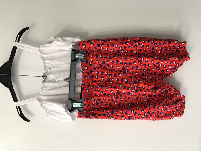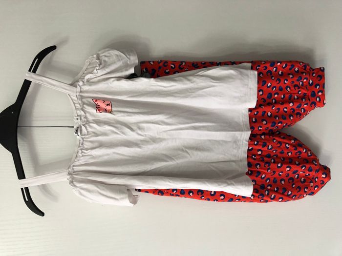 Ensemble fille composé d'un haut et d'un pantacourt élastiqué à la taille Motif chat sur le haut et taches sur le bas Marque Gémo Taille 4 ans