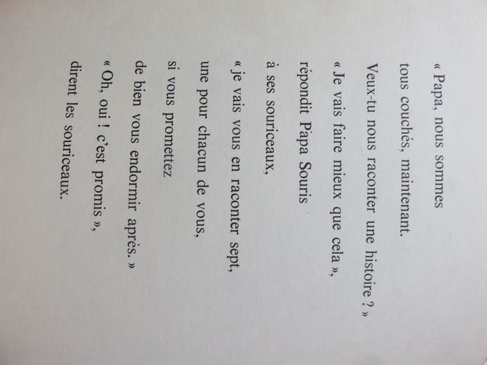 ⚠️ ÉTAT : très bon état 👁️‍🗨️ DÉTAILS : 14 x 21 cm 63 pages 💬 RÉSUMÉ : Papa souris a sept petits souriceaux. Sept petits souriceaux qui aiment énormément les histoires. Sept petits souriceaux à qui Papa souris raconte une histoire le soir avant qu'ils ne s'endorment. Ce soir-là, Papa souris a une idée : il va raconter sept histoires. Une histoire pour chacun de ses petits souriceaux. Ecoutez donc... ❤️ MON AVIS : Sept petites histoires drôle,amusante et poétique dont les illustrations accompagnent parfaitement le texte.