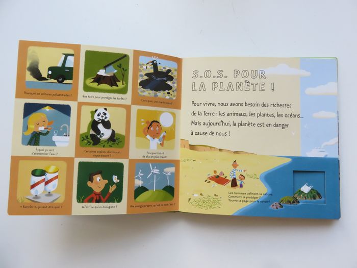 ⚠️ ÉTAT : très bon état 💬 RÉSUMÉ : Des volets à soulever, des tirettes à actionner et d'autres surprises au fil des pages... Un livre fait pour sensibiliser l'enfant à la protection de l'environnement. Pourquoi les voitures polluent-elles ? Que faire pour protéger les forêts ? Comment gaspiller moins d'eau ? C'est quoi, le réchauffement climatique ? Recycler, ça veut dire quoi ? 📦 LIVRAISON : Envoi ou remise en main propre sur Lyon