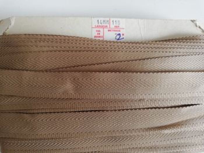 22 mètres de ruban marron clair beige pour loisirs créatifs, couture ou autre. 14mm de large.