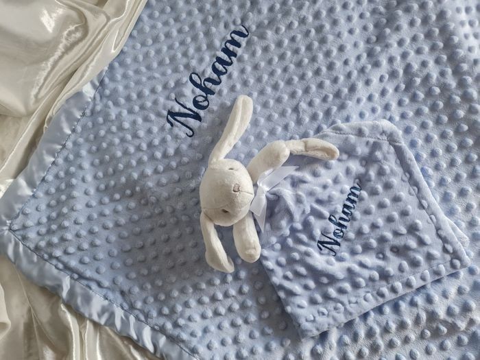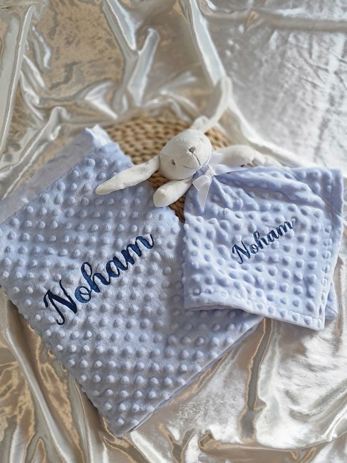 Couverture et doudoud à personnaliser Prenom Broder Couleur dispo : rose, gris, ou bleu