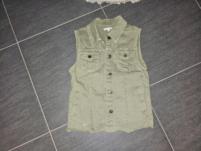 Bonjour 👋 Je vend cette : 👉 veste sans manches taille xl donc 12 ans Couleur kaki ( une trace blanche en bas pas gênant) Maison 🏚 non fumeur et sans animaux