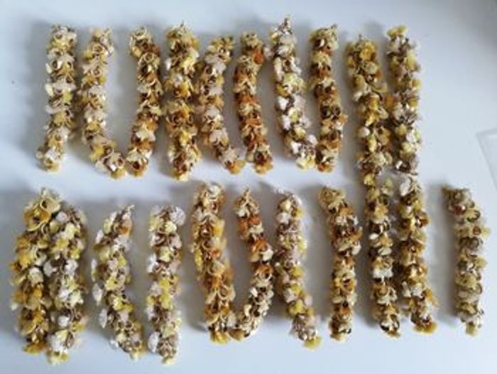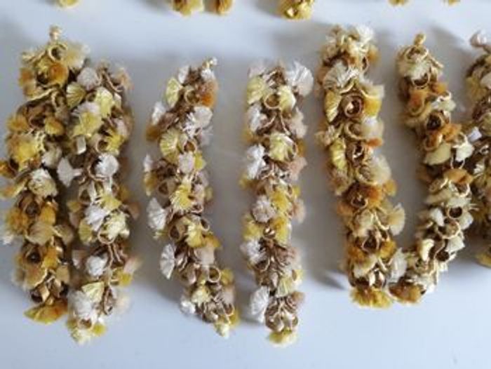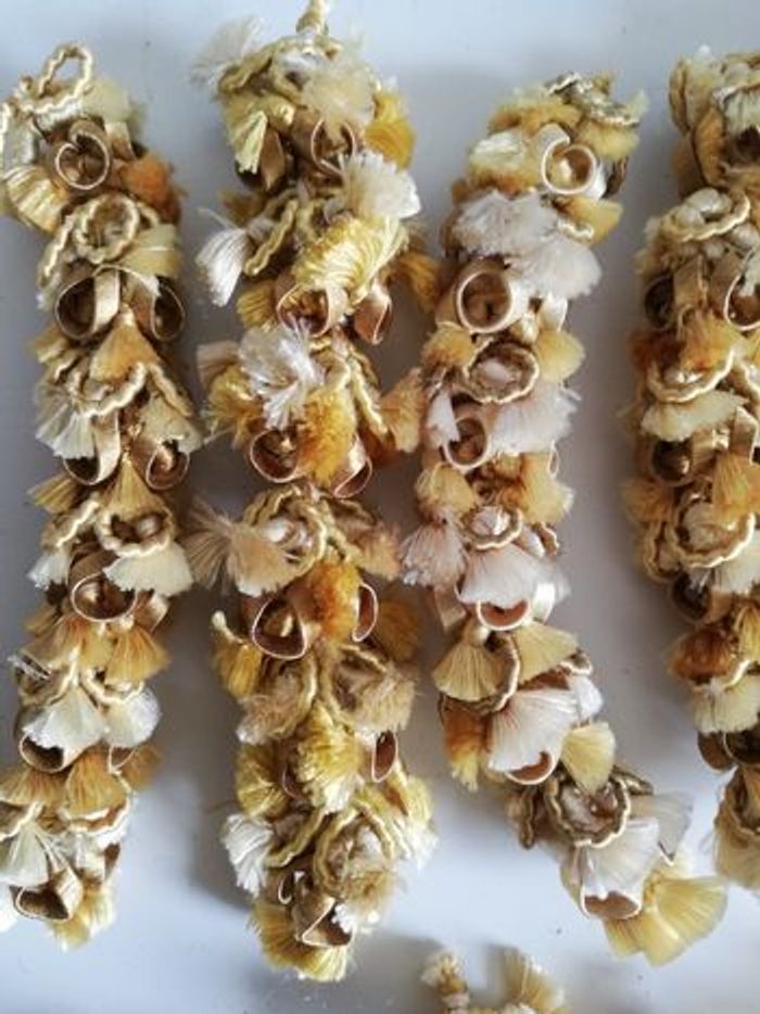 Lot de 21 pompons long jaune blanc beige pour loisirs créatifs. 10euro50 le lot.