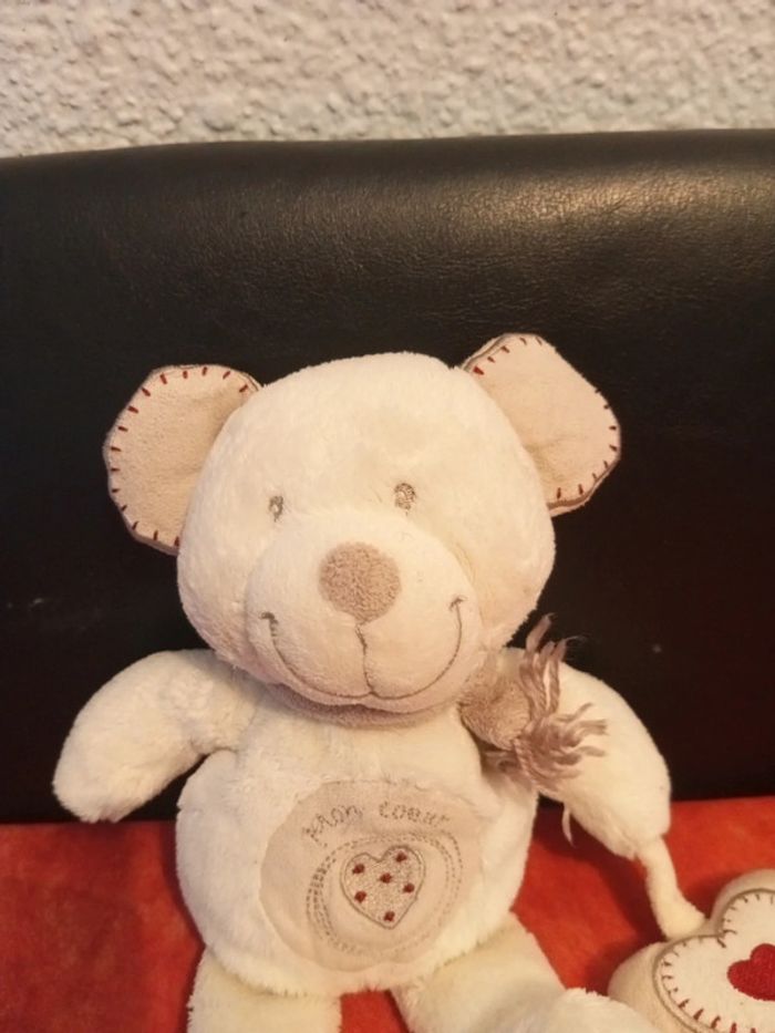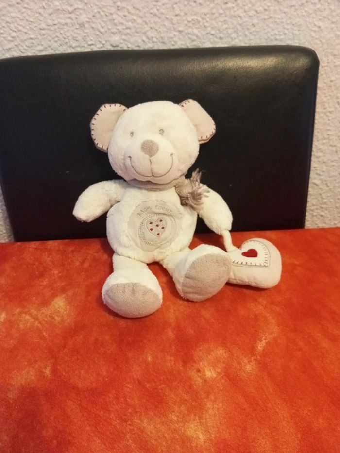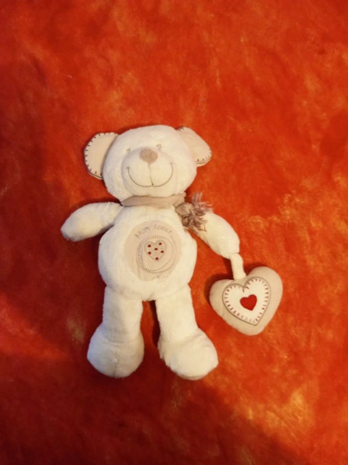 🚨N'hésitez pas à me demander pour les lots, ils ne se font pas automatiquement car vendeuse pro,réduction jusqu'à 30%🚨 Peluche doudou ours ourson nounours marque Pommette avec chœur grelot. Très bon état, vendu comme sur les photos Dans mon dressing, il y a d'autres peluches, des Petshop, des Lego Duplo, des Playmobil, des Barbie et beaucoup de jeux et jouets vintage