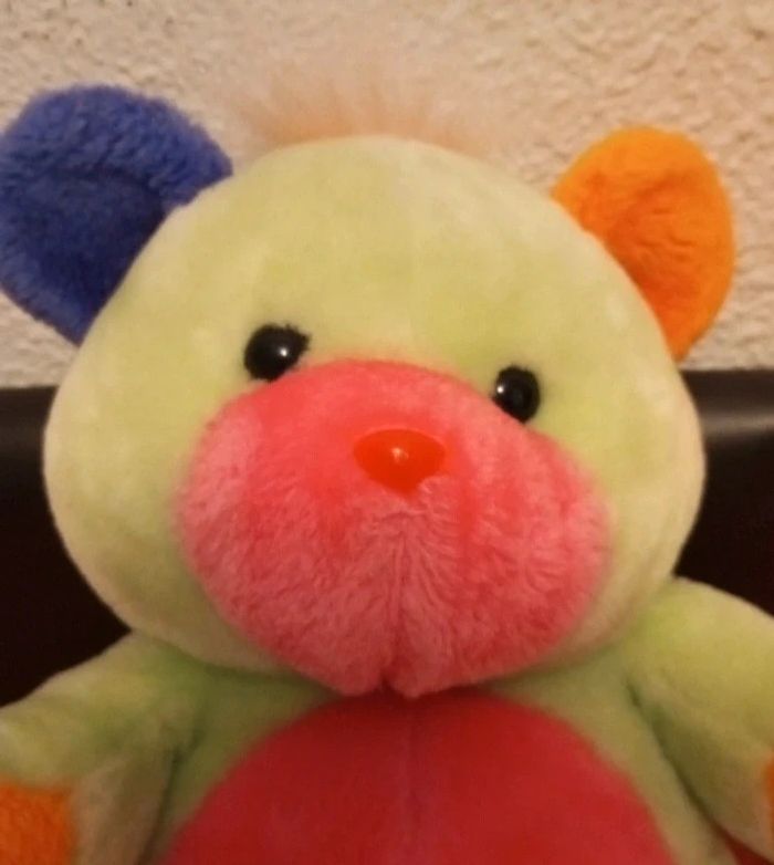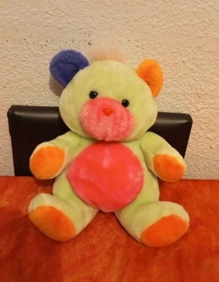 🚨N'hésitez pas à me demander pour les lots, ils ne se font pas automatiquement car vendeuse pro,réduction jusqu'à 30%🚨 jolie peluche de 32 cm d'un ours Ourson multicolore, vert, oronge, rose et bleu En très bon état, comme neuf, voir les différentes photos. N'hésitez pas à visiter mon dressing, il y a des Duplo, des Playmobil, des Barbie et beaucoup de peluches et jouets vintage