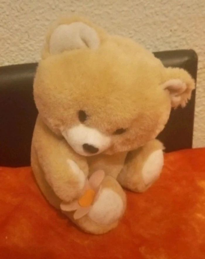 🚨N'hésitez pas à me demander pour les lots, ils ne se font pas automatiquement car vendeuse pro,réduction jusqu'à 30%🚨Vends cette très jolie peluche ours nounours beige caramel et blanc avec fleur. Très bon état, voir les différentes photos. N'hésitez pas à visiter mon dressing, il y a des Duplo, des Playmobil, des Barbie et beaucoup de peluches et jouets vintage
