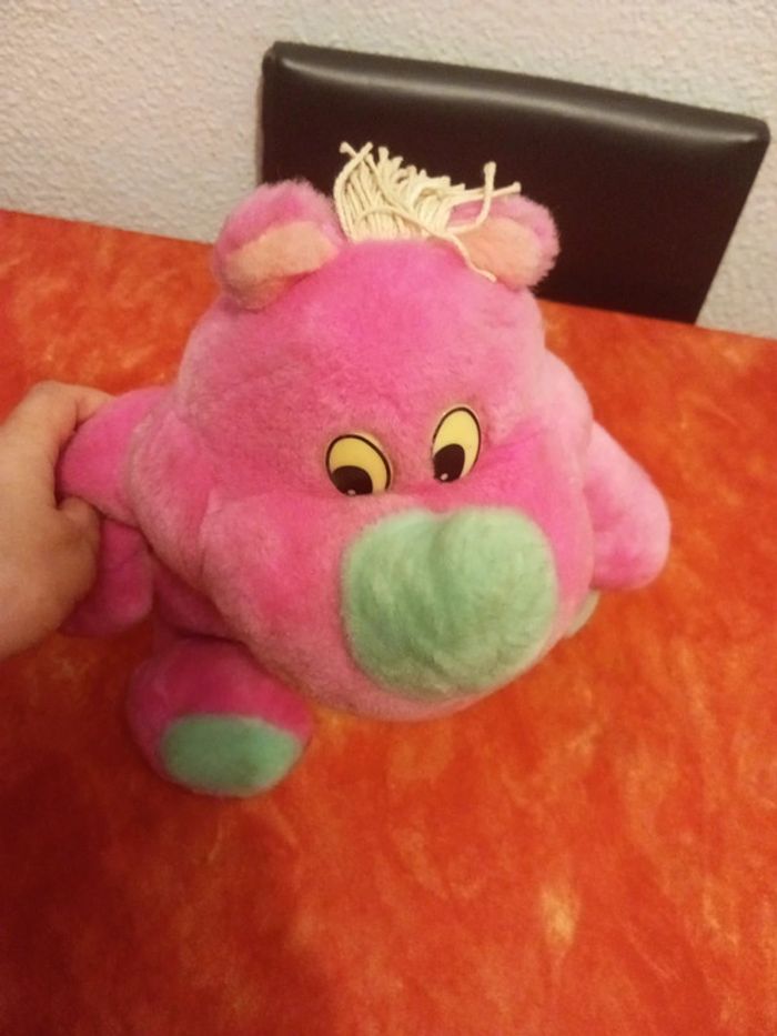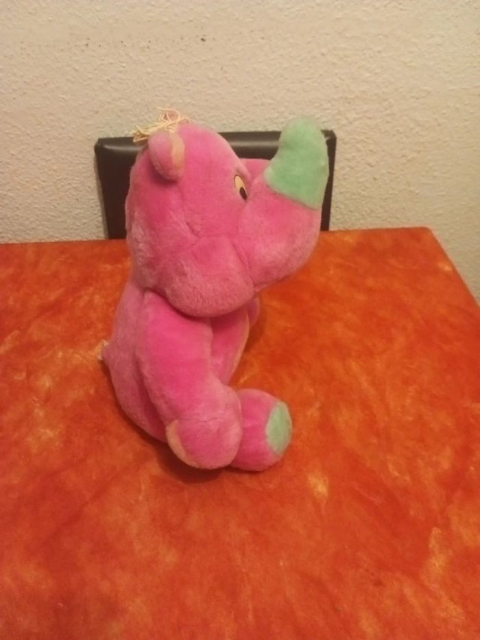 🚨N'hésitez pas à me demander pour les lots, ils ne se font pas automatiquement car vendeuse pro,réduction jusqu'à 30%🚨 Très jolie peluche d'un rhinocéros rose et vert de marque Nounours Très bon état, voir les différentes photos. Dans mon dressing, il y a d'autres peluches, des marionnettes , des Petshop, des Lego Duplo, des Playmobil, des Barbie et beaucoup de jeux et jouets vintage