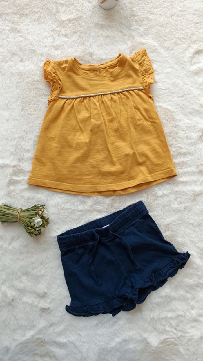 #melbien20_fille_12mois Tee-shirt et short 12 mois Gémo Très bon état