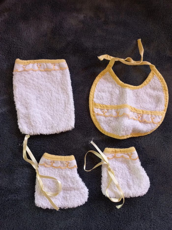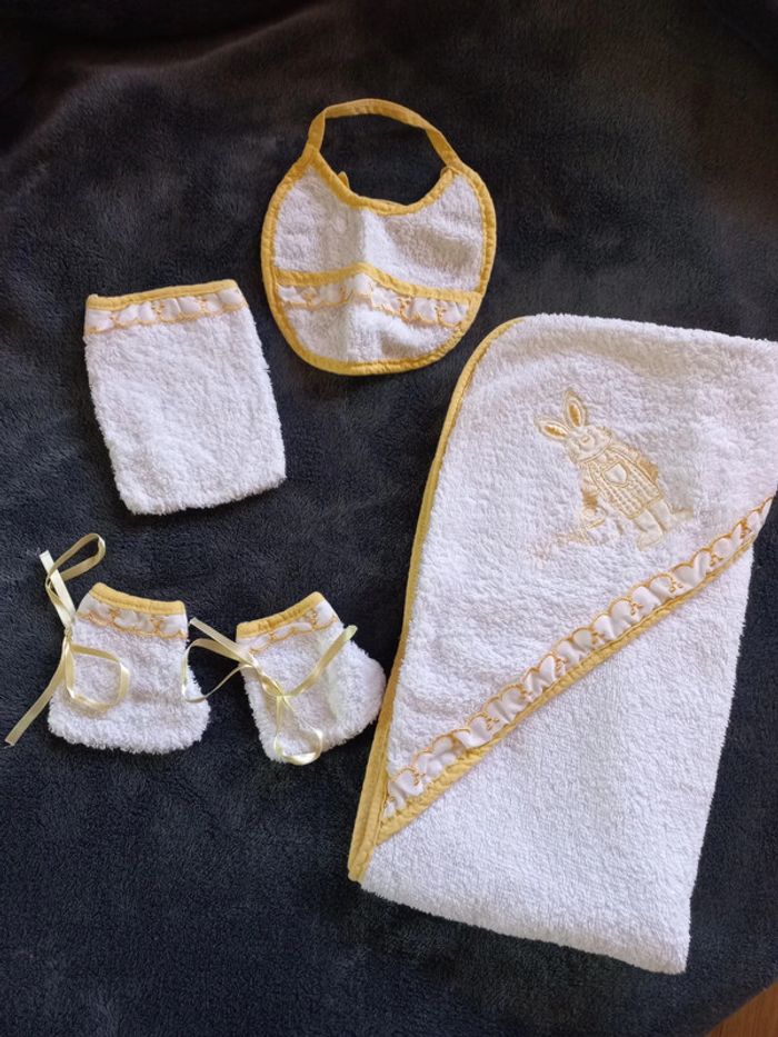 Ensemble : Cape de bain Bavoir Gant Chaussons Ensemble Neuf juste lavé