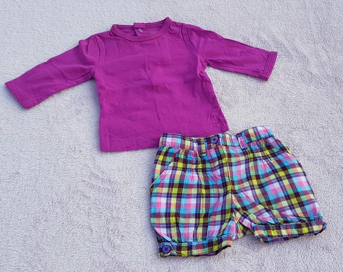 Ensemble Haut manche longue kitchoun Short léger vertbaudet Fichu vertbaudet Très bon état 3 mois #felicidad60_3moisfille #felicidad60_kiabi #felicidad60_vertbaudet