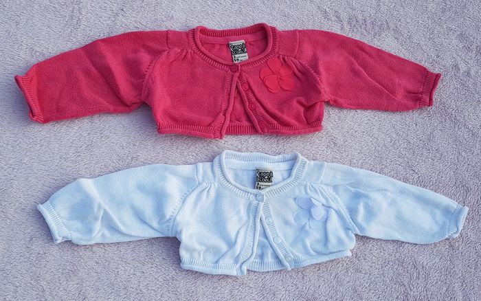 Lot de 2 gilets Marque tape à l'oeil Très bon état 3 mois Coloris blanc et framboise #felicidad60_3moisfille #felicidad60_tapealoeil