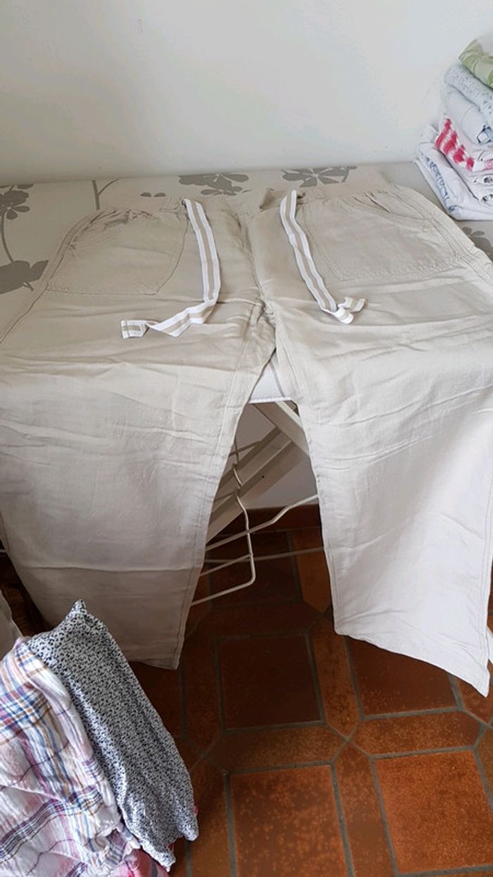 Pantalon lin beige - photo numéro 2