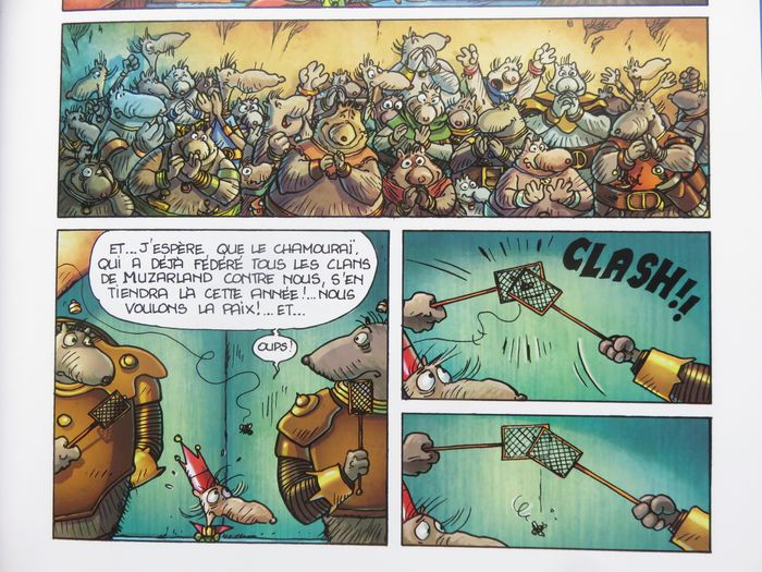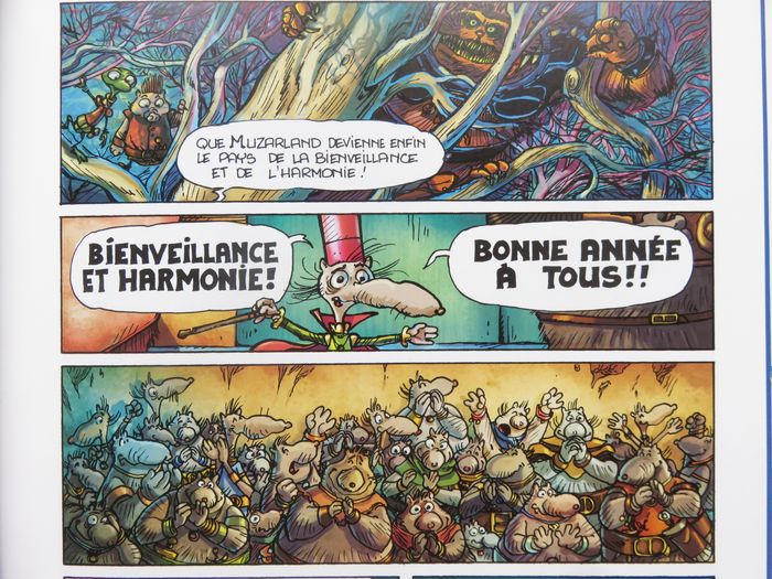 💰 PRIX FIXE ⚠️ ÉTAT : Très bon état ⚠️ RÉSUMÉ : Au pays des Muzarins, le Muzaroi a fort à faire pour assurer une paix durable avec les Hystérichats, les Pulmocrapauds et autres espèces belliqueuses qui convoitent son trône. L'âge avançant, il lui est de plus en plus difficile de faire régner la bienveillance et l'harmonie sur son royaume. Heureusement, le Muzaroi détient seul un pouvoir mystérieux qui lui permet encore et toujours de repousser les ardeurs de ses ennemis. Mais il sent peu à peu ses forces le quitter. L'heure est venue pour lui de transmettre son secret. Le petit Bugz semble être l'heureux élu...