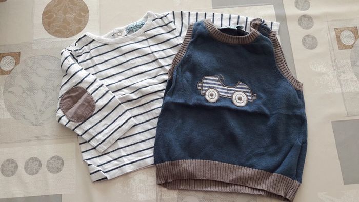 T-shirt et pull sans manche 6 mois En très bon état Thème voiture