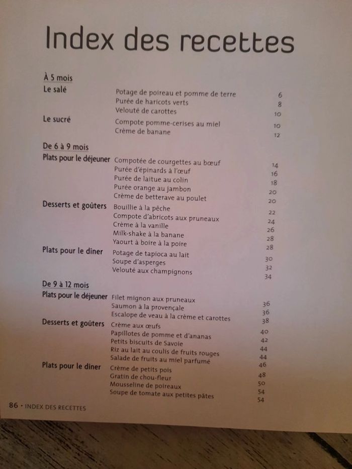 Livre recettes pour bébé en tbe De 5 mois à 24 mois 87 pages #lilousab07livres