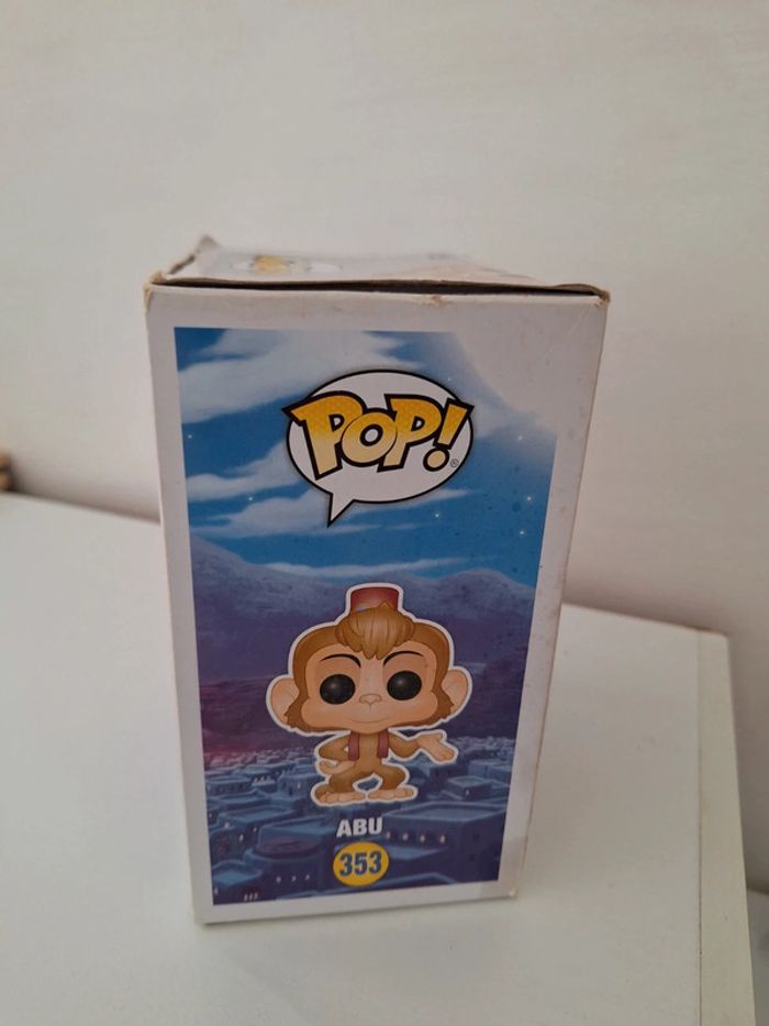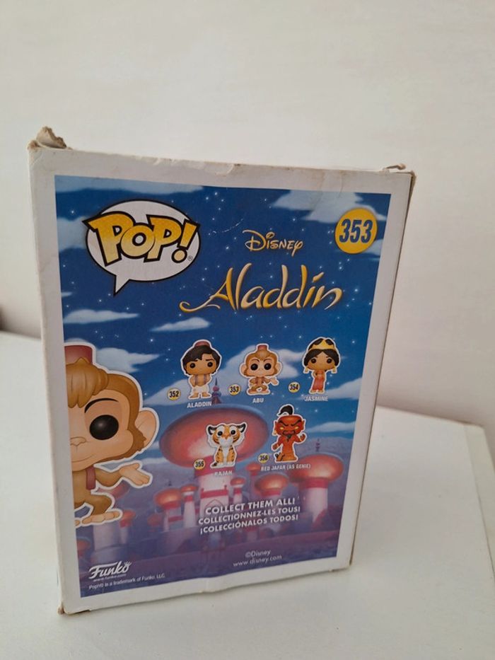 Figurine pop Aladdin Abu. 353. Dans la boîte et emballage d'origine. La boîte est abîmé.