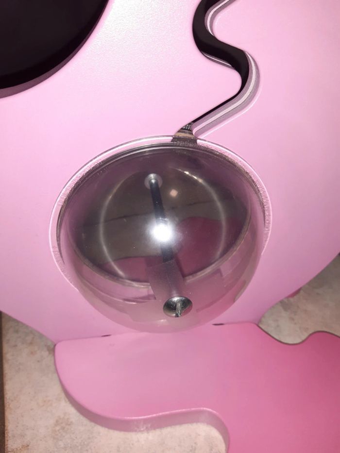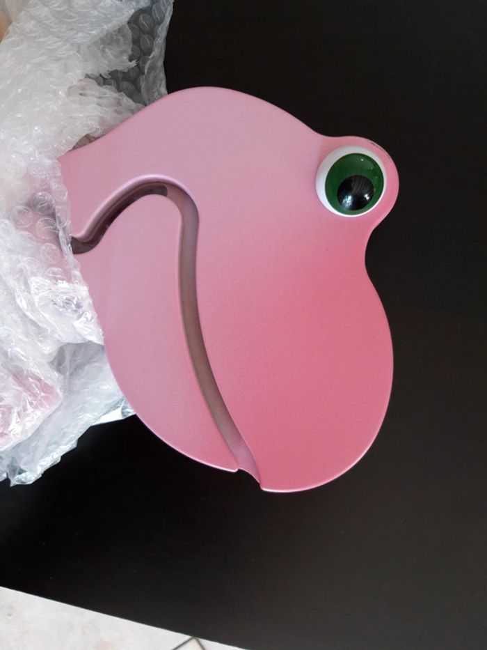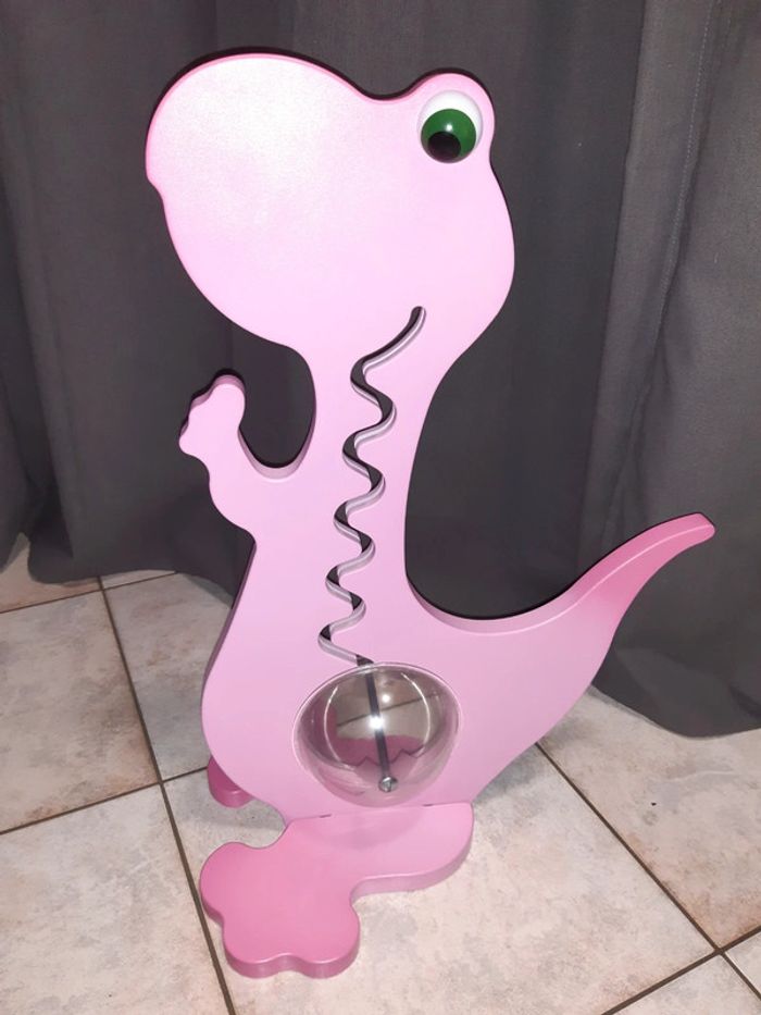 Tirelire dinosaure en bois. Marque bigbellybank. Hauteur 57cm. Largeur 25cm. Couleur rose.