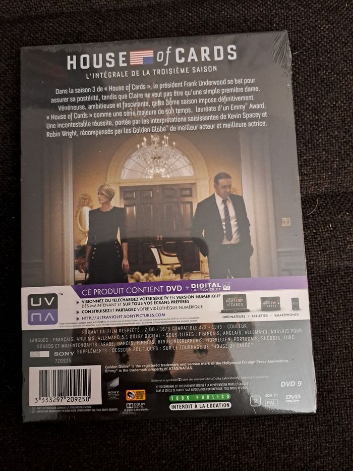 DVD House of cards S3. Neuf, encore emballé, sous blister.