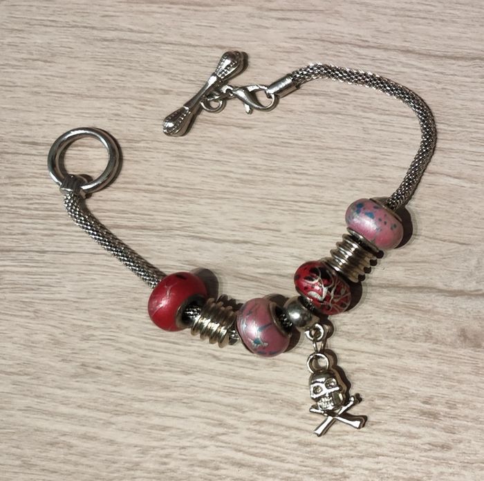 Bracelet argenté avec perles, breloques, pendentif crâne et fermoir atypique. Taille non ajustable. Neuf sans étiquette ni emballage. Réductions activées ! 2 articles : 5% 3 articles : 10% 5 articles : 15% Je vide mes placards, mon grenier, mes cartons ! N'attendez pas pour acheter, je n'ai qu'un exemplaire de chaque ! #mllejoysbijoux #mllejoysneuf