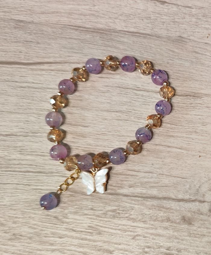 Bracelet élastique avec perles lilas et pendentif papillon doré et résine lila. Neuf sans étiquette ni emballage. Réductions activées ! 2 articles : 5% 3 articles : 10% 5 articles : 15% Je vide mes placards, mon grenier, mes cartons ! N'attendez pas pour acheter, je n'ai qu'un exemplaire de chaque ! #mllejoysbijoux #mllejoysneuf