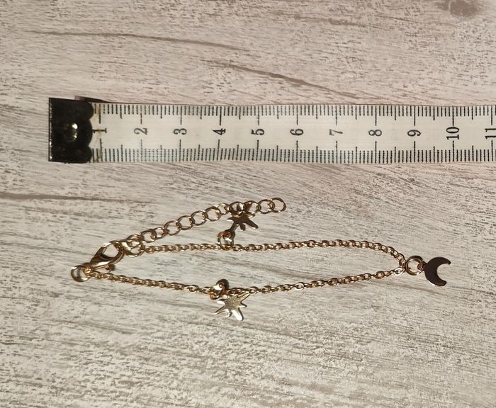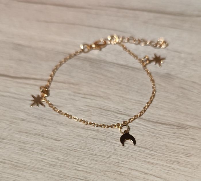 Bracelet doré avec breloques étoiles et lune ajustable. Neuf sans étiquette ni emballage. Réductions activées ! 2 articles : 5% 3 articles : 10% 5 articles : 15% Je vide mes placards, mon grenier, mes cartons ! N'attendez pas pour acheter, je n'ai qu'un exemplaire de chaque ! #mllejoysbijoux #mllejoysneuf