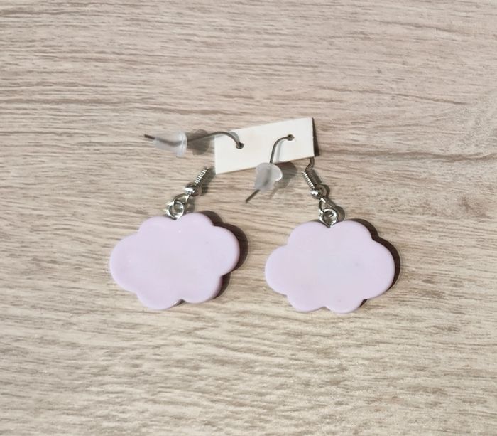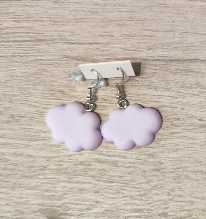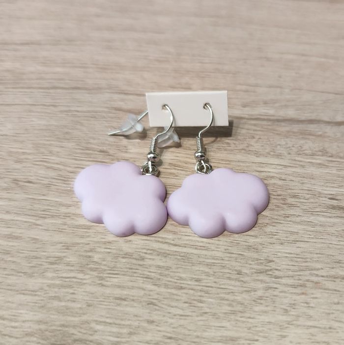 Petits nuages lilas en résine en boucles d'oreilles. Neuf sans étiquette ni emballage. Je vide mes placards, cartons, grenier ! N'attendez pas pour acheter, je n'ai qu'un exemplaire de chaque article. Si jamais j'en ai deux, c'est exceptionnel et sûrement parce que je me suis trompée dans mes achats personnels. Bonne visite ! 👀 #mllejoysbijoux #mllejoysneuf