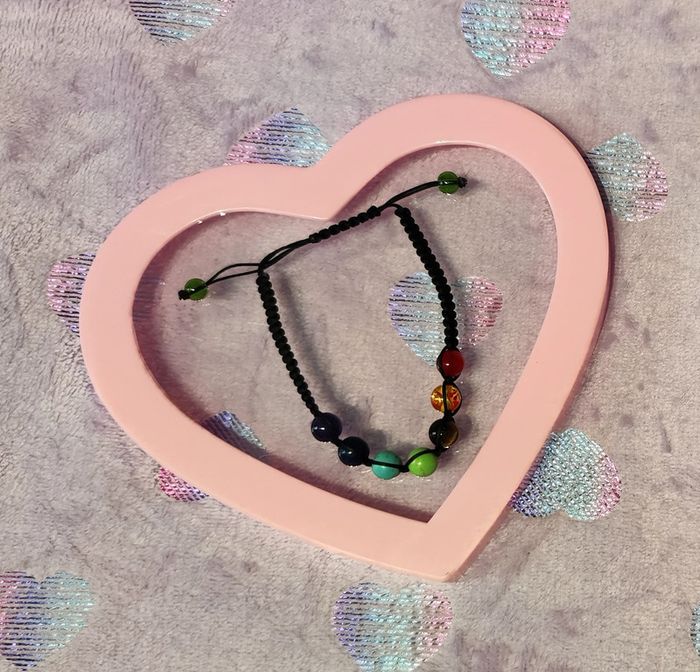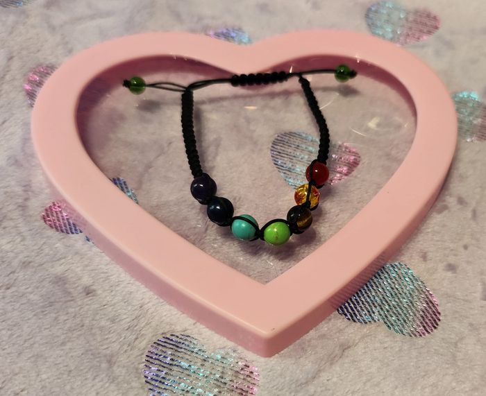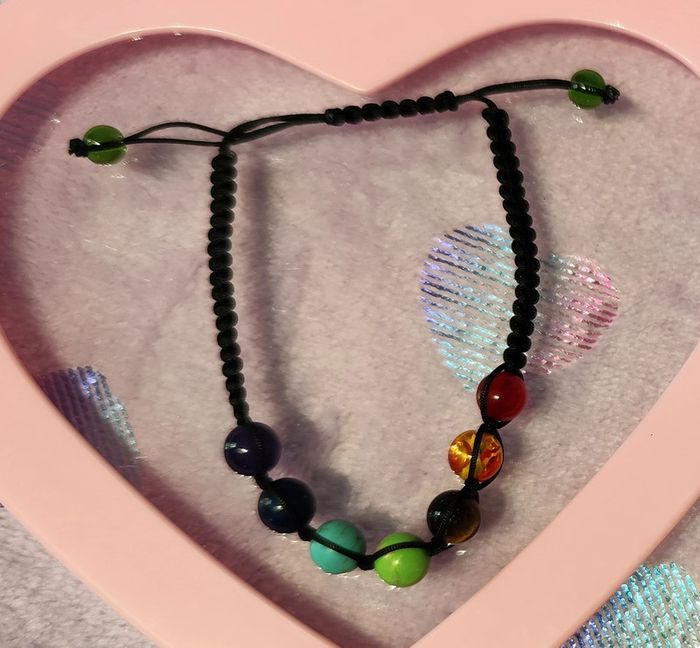 Bracelet ajustable en fil noir avec perles multicolores de shakras. Les perles ne sont pas en plastique. Neuf sans étiquette ni emballage. #mllejoysbijoux #mllejoysneuf