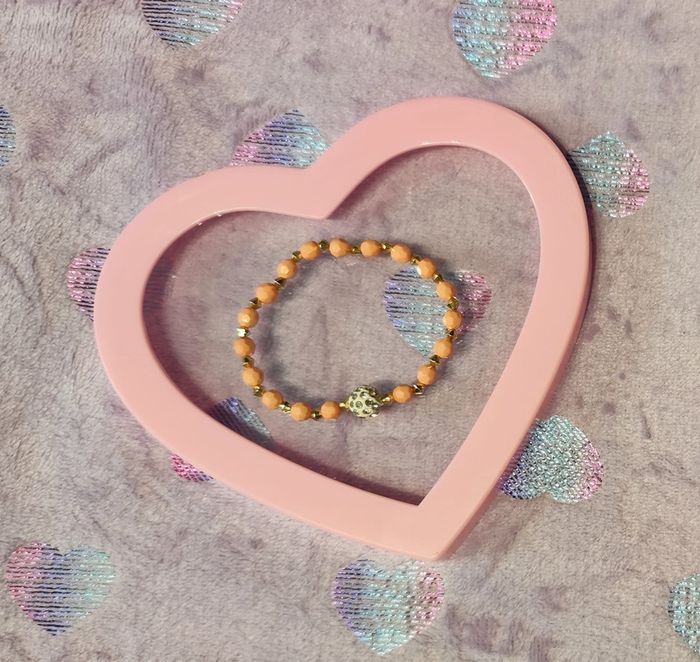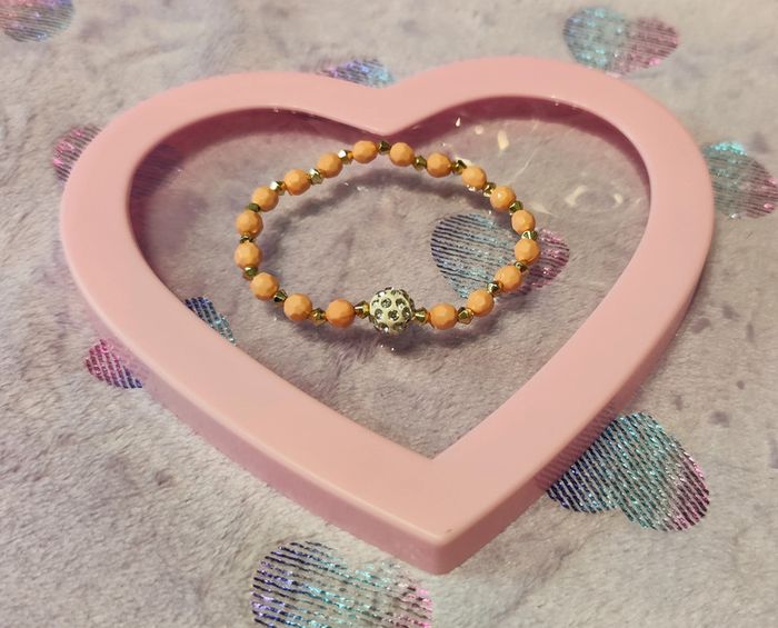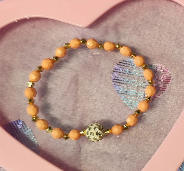 Bracelet élastique avec perles oranges et dorées. Neuf sans étiquette ni emballage. #mllejoysbijoux #mllejoysneuf