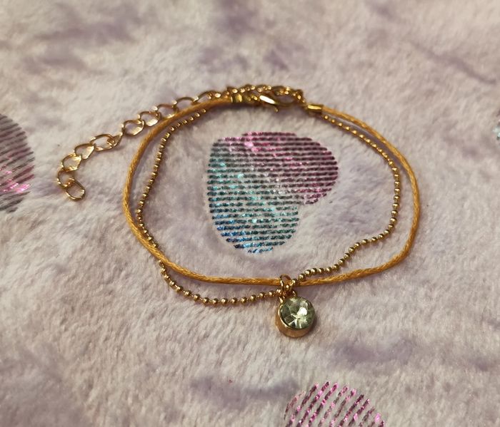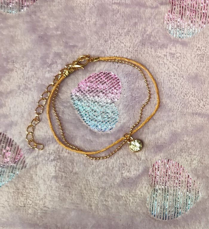 Bracelet doré et beige avec breloque zirconium ajustable. Neuf sans étiquette ni emballage. #mllejoysbijoux #mllejoysneuf
