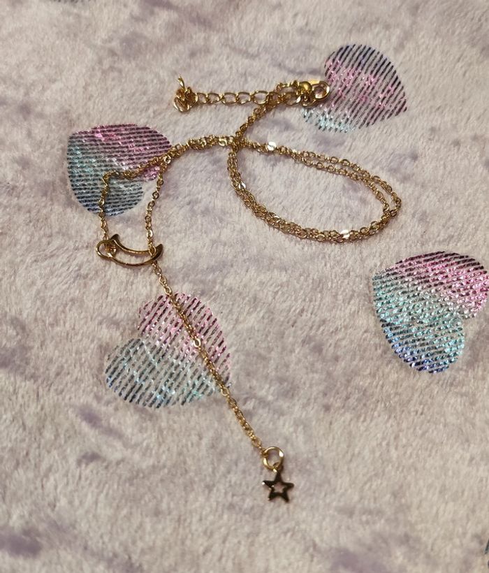Collier doré avec breloques lune et étoile ajustable - photo numéro 1