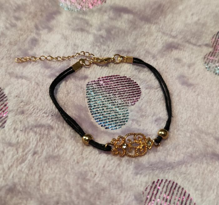 Bracelet noir et doré avec breloque dorée et zirconiums ajustable. Neuf sans étiquette ni emballage. #mllejoysbijoux #mllejoysneuf