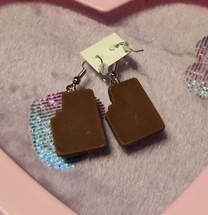 Tablettes de chocolat gourmand en résine en boucles d'oreilles. Neuf sans étiquette ni emballage. #mllejoysbijoux #mllejoysneuf