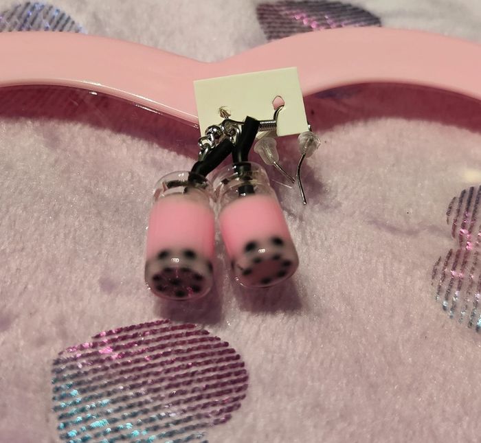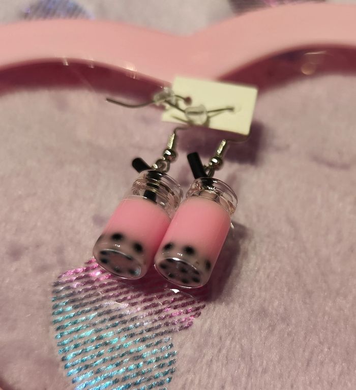 Verres de smoothie fraise en résine en boucles d'oreilles. Neuf sans étiquette ni emballage. #mllejoysbijoux #mllejoysneuf