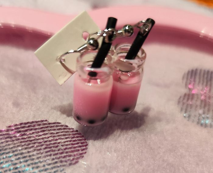 Verres de smoothie fraise en résine en boucles d'oreilles - photo numéro 3